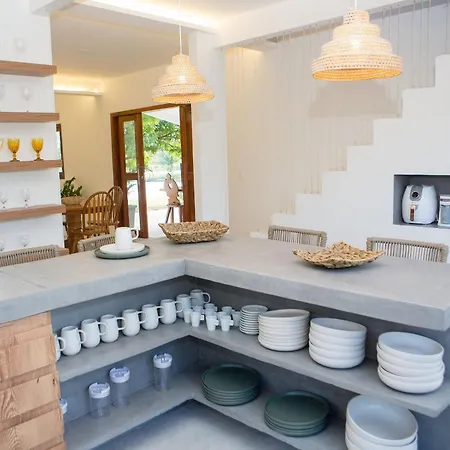 Questa casa vacanze è dotata di un frigo, un forno e utensili da cucina per il self-catering in una zona pranzo all'aperto.